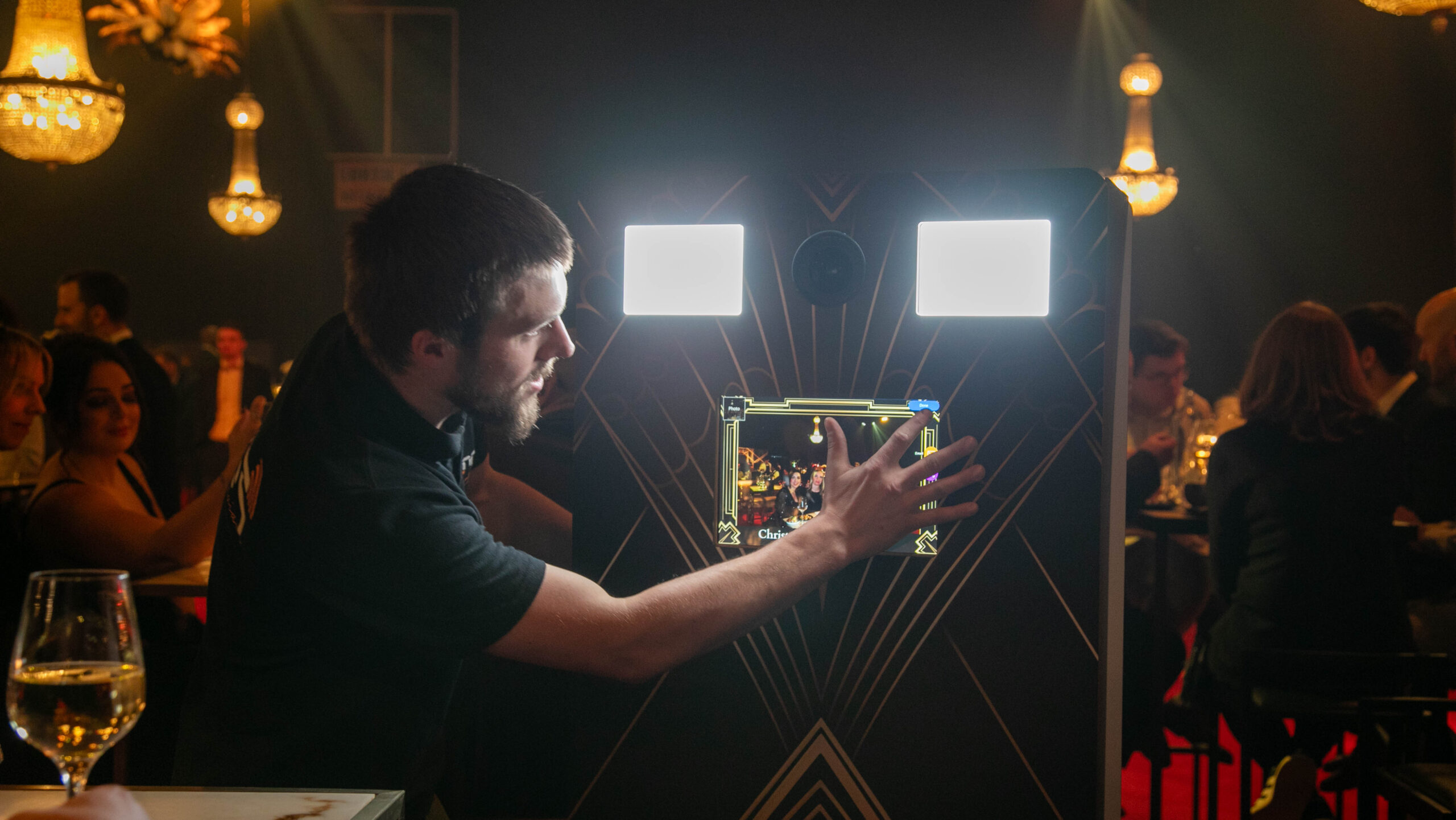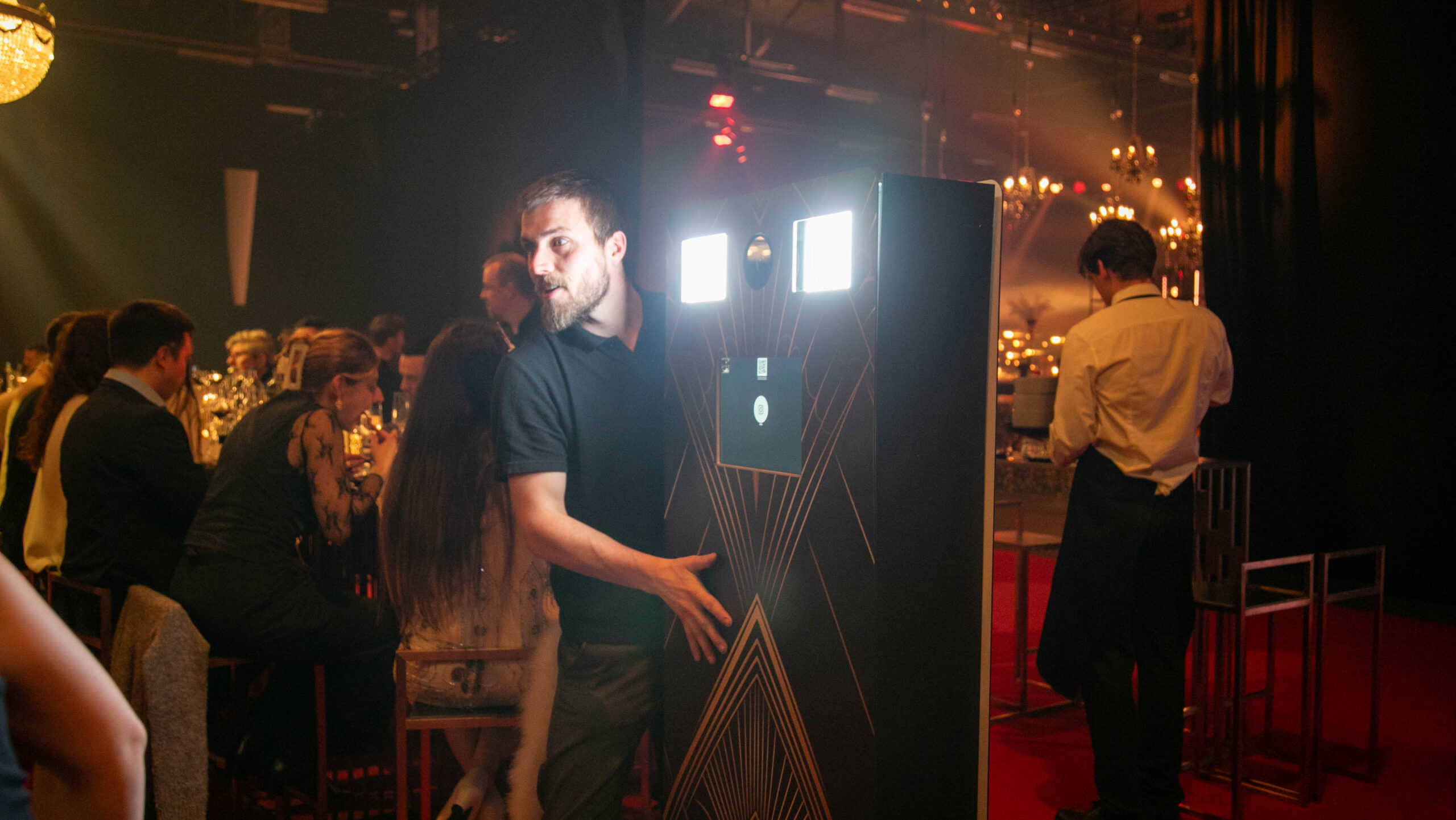 À l’occasion de la staff party organisée au Ciney Expo, nous avons mis en place notre photobooth mobile entièrement personnalisé, spécialement conçu pour s’intégrer parfaitement au thème Gatsby de l’événement.